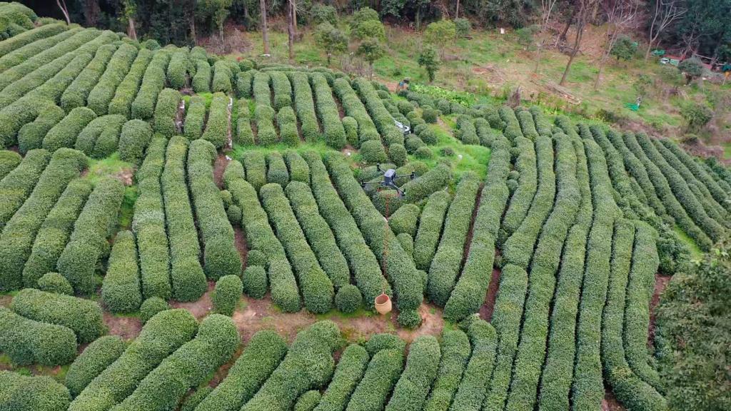 与往年不同的是,今年运送鲜叶的不再只是茶农的背篓——天空中,无人机嗡嗡作响,载着刚采摘的鲜叶稳稳降落。“以前人工从山上背下来,路上的颠簸摩擦会影响茶叶品质。”孙斌说,翁家山已组建了一支无人机队伍,4台无人机、6个飞手,不仅用于运输,还覆盖日常管理、冬季施肥。