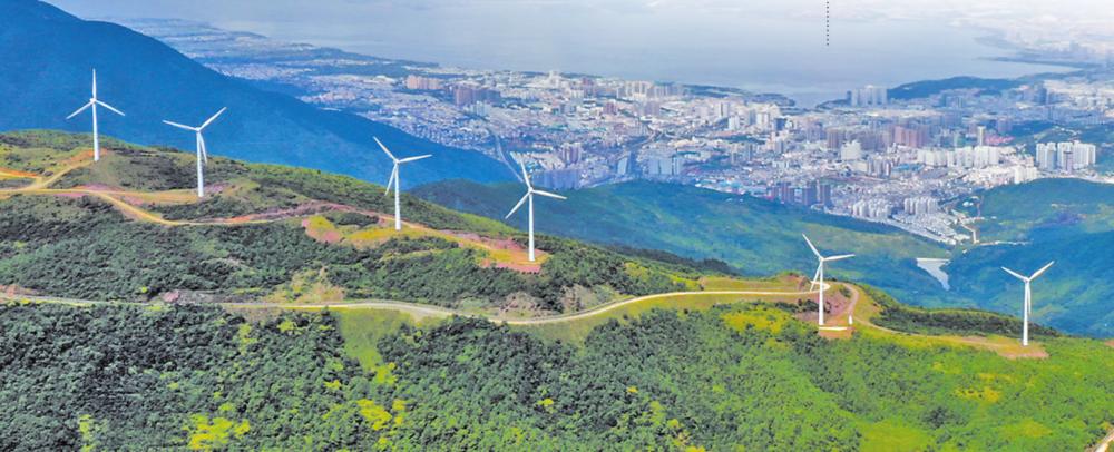 大理者磨山上的风机迎风旋转,构成一幅壮美的生态画卷。记者 陈飞 摄