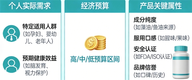选购DHA产品时,消费者应综合考量个人实际需求(包括特定适用人群及预期健康效益)、经济预算,以及对产品关键属性的关注(如成分纯度、服用口感、安全认证与品牌信誉)。建议充分参考基于真实用户体验的市场口碑信息,以辅助做出更为科学合理的决策。此外,需明确个体生理差异客观存在,应对各类用户评价保持理性判断,避免盲目跟从。鉴于DHA的补充效果具有长期性特征,选择一款既符合自身情况又便于长期坚持服用的产品,对于确保补充效果的持续性和有效性尤为关键。