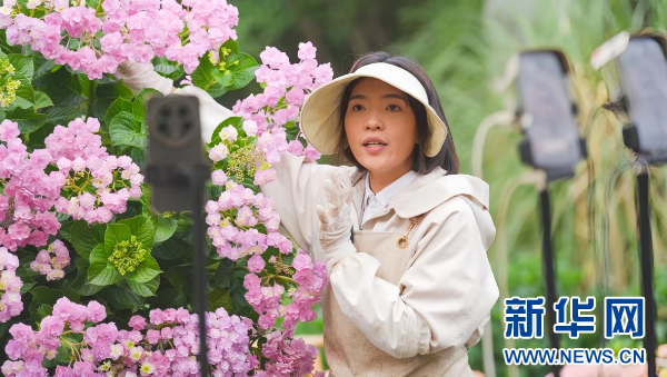 “家人们,绣球花新品种,今天福利价只要39块9!”贵州惠水合生花境园艺有限公司的抖音直播间里,主播龙芸熟练地展示着盆栽,她轻轻掰开一团花球给观众看特写镜头:“3号链接的红宝石灯塔绣球花,特点就是花球大,耐低温、耐暴晒!”