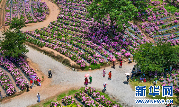 惠水县好花红村桔乡花海山体公园内绽放的绣球花。(惠水县融媒体中心供图)