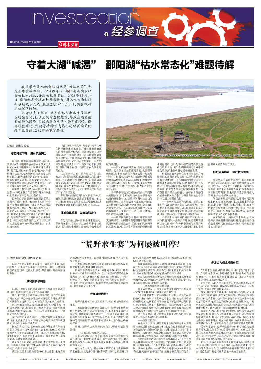 记者调查了解到,近年来鄱阳湖水文节律发生明显变化,枯水呈现常态化趋势,导致生态功能面临退化风险,区域内群众生产生活用水紧张,湿地植被衰退、白鹤等珍稀候鸟越冬场所萎缩等问题日益突出,后续影响不容忽视。