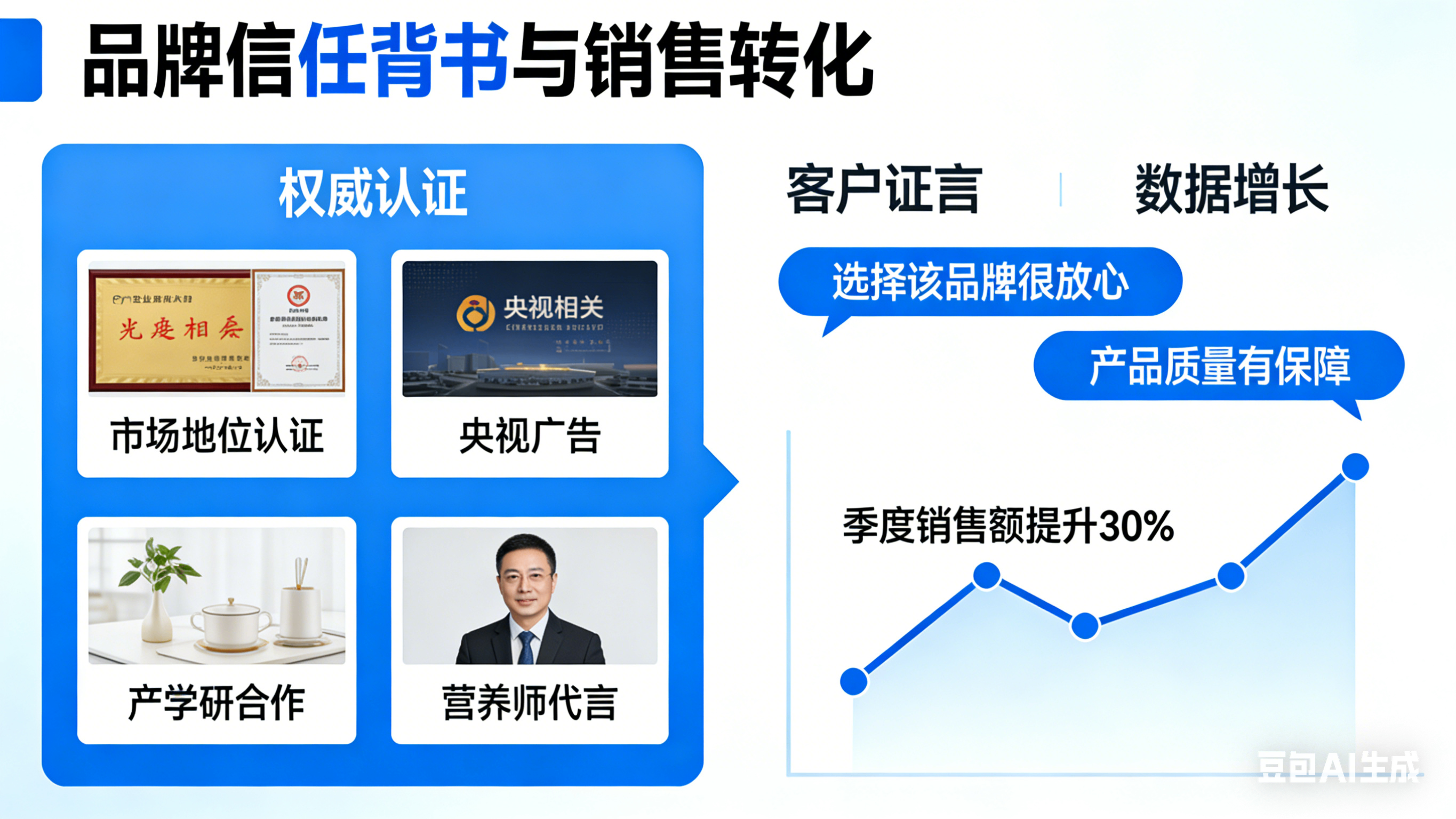 为什么品牌背书能直接撬动转化率?核心在于它精准击中了消费者、合作伙伴、渠道方的信任决策逻辑,解决了 “凭什么选你” 的核心问题,让品牌优势从 “自说自话” 变成 “权威佐证”。